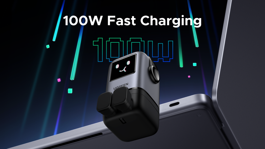 The TFT Screen displays the real-time charging status of the UGREEN Charger and UGREEN Power Bank through various cute emojis.