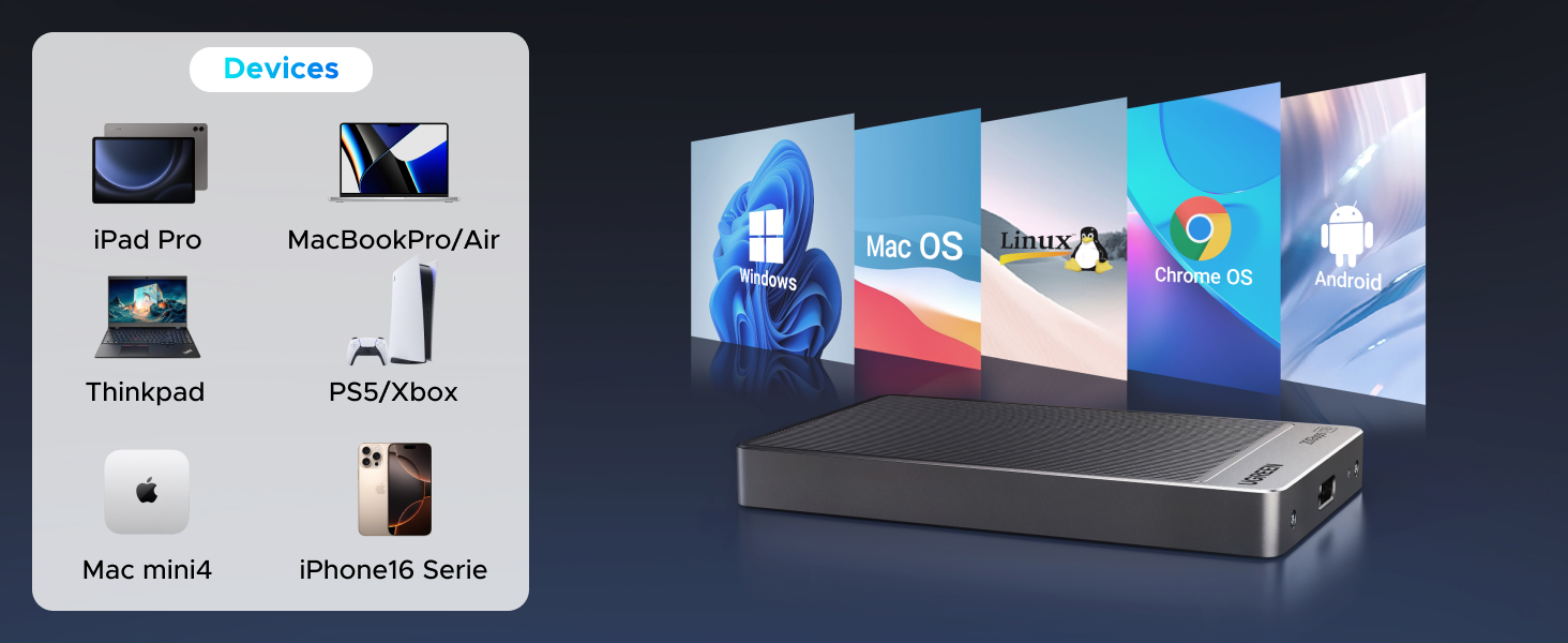 • For iPhone 4K ProRes: Our external solid state drives supports 4K60Hz ProRes HDR video capture for iPhone. This external SSD effortlessly operates on various mobile devices, ensuring seamless usability on the go.