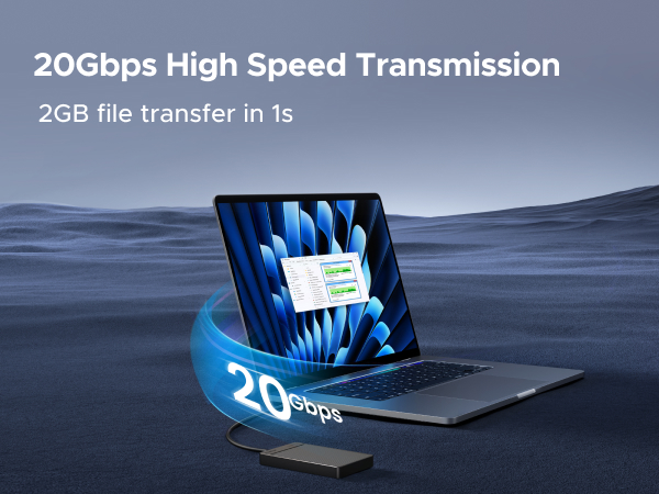 • Fast Data Transfer: The UGREEN Portable SSD supports USB 3.2 Gen 2x2 standard, read and write speeds up to 2,000 MB/S. Supports UASP & TRIM protocols, transfers 2GB files in 1s.