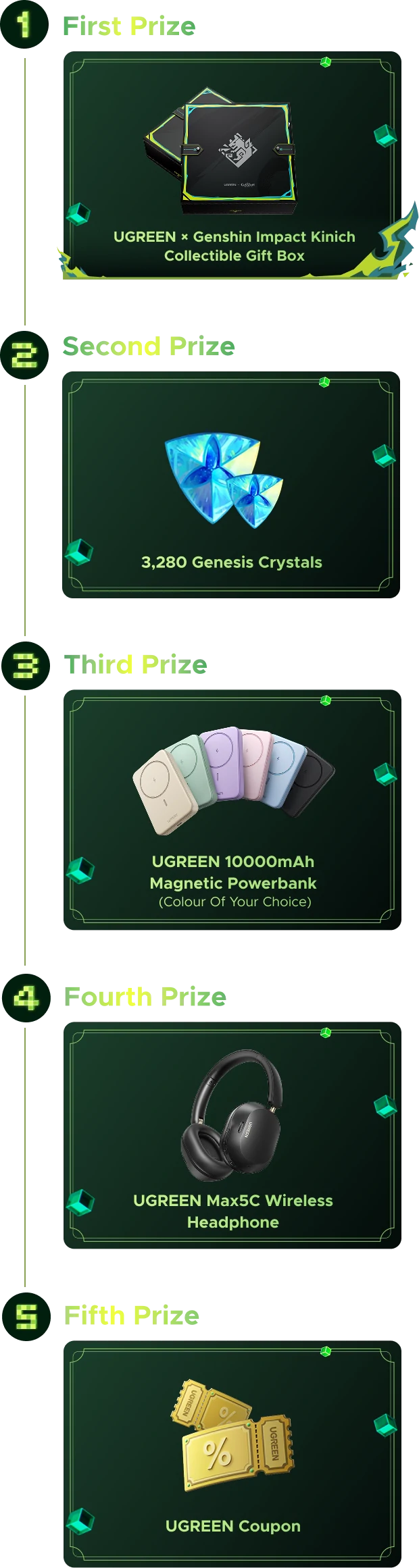 We warmly invite you to complete our commissions and stand a chance to win a UGREEN × Genshin Impact gift box and 3,280 Genesis Crystals. Those who successfully completed tasks will be rewarded under the name of "Malipo".