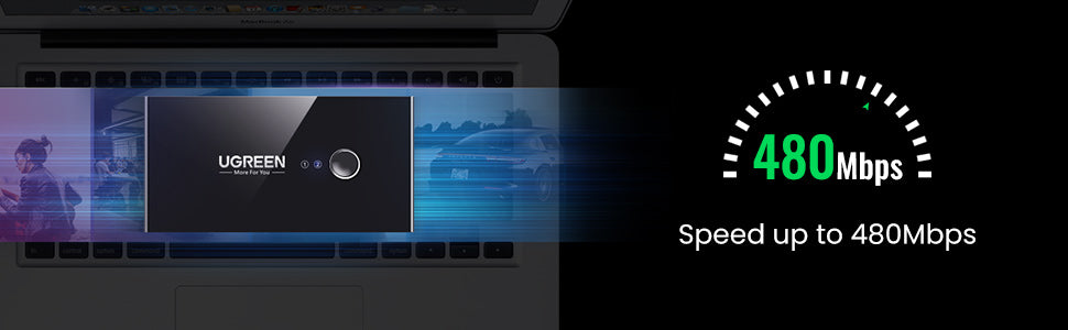 allows one button swapping between 2 computers to share 4 USB 2.0 peripheral devices