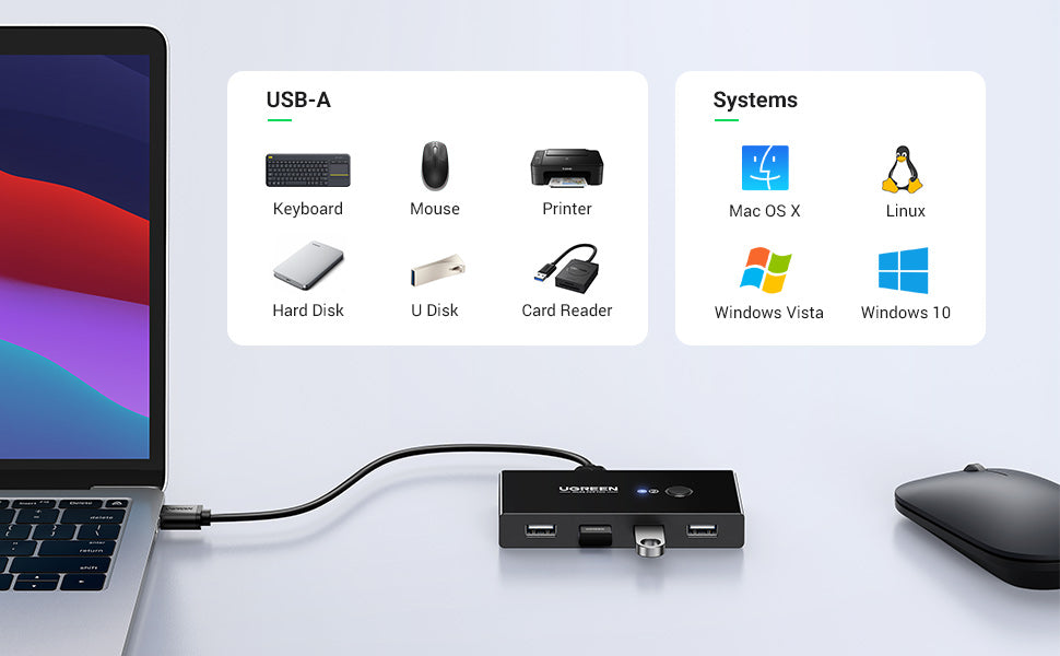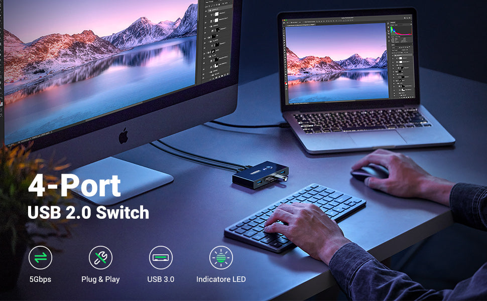 UGREEN USB 2.0 Switch 2 In 4 Output USB KVM Switch